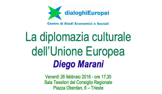 Il prossimo incontro di Dialoghi Europei riguarderà la politica estera dell’Unione Europea, considerata però da un’angolazione particolare, quella della diplomazia culturale. A parlarne sarà un rappresentante del SEAE, il servizio diplomatico dell'Unione europea.