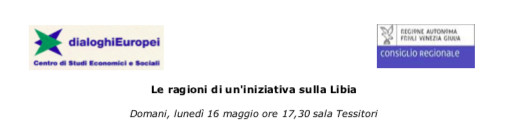 Tema dunque di grande attualità ed è proprio all' “Italia alle prese con il caos libico” che sarà dedicata la prossima conferenza di Dialoghi Europei che in collaborazione con il Consiglio regionale del Friuli Venezia Giulia si terrà lunedì prossimo, 16 maggio con inizio alle 17,30 nella sala Tessitori di piazza Oberdan.