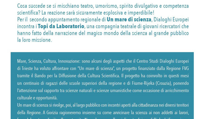 Mare, Scienza, Cultura, Innovazione: sono alcuni degli aspetti che il Centro Studi Dialoghi Europei di Trieste ha voluto affrontare con “Un mare di scienza”.