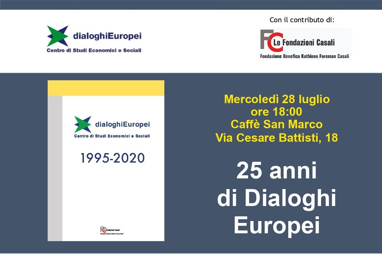 Il 2020 ha rappresentato per Dialoghi Europei anche il raggiungimento di un anniversario importante: esattamente 25 anni prima, un quarto di secolo fa, veniva fondata l’Associazione.