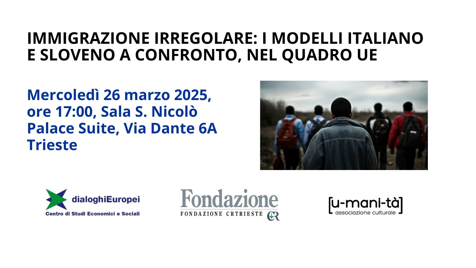 Parleremo di immigrazione irregolare, soprattutto ai confini ad est, con riferimento alla rotta balcanica, confrontando le legislazioni italiana e slovena in materia, anche alla luce dei recentissimi sviluppi a livello europeo, in particolare per quanto riguarda i rimpatri.