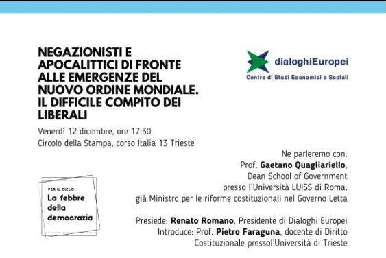 si è affrontato il tema “NEGAZIONISTI E APOCALITTICI DI FRONTE ALLE EMERGENZE DEL NUOVO ORDINE MONDIALE. IL DIFFICILE COMPITO DEI LIBERALI”