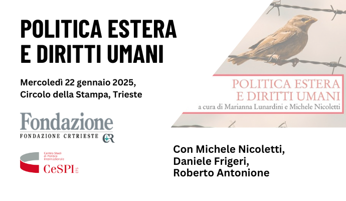 Parleremo di "Politica estera e diritti umani", spesso percepita come una contraddizione in termini, con il coordinatore dell'Osservatorio Diritti Umani del CeSPI, professor Nicoletti, e con il presidente e direttore del CeSPI, Daniele Frigeri, nell'ambito del ciclo di conferenze sostenuto dalle Fondazioni Casali.