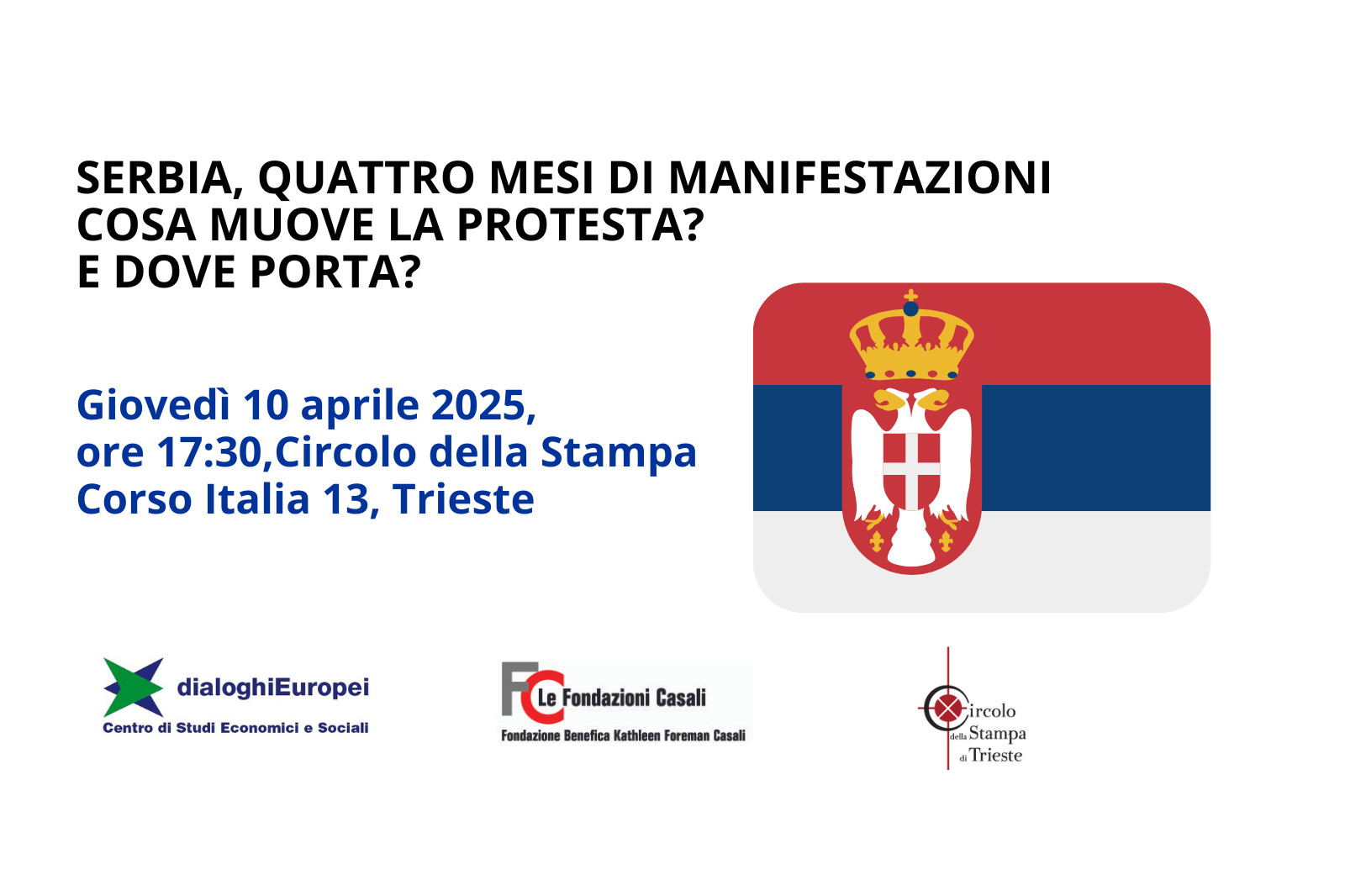 Da quattro mesi le principali città serbe sono teatro di manifestazioni imponenti, inizialmente composte da giovani, poi via via da tutte le fasce di popolazione. La scintilla che ha fatto scattare la protesta è stata il crollo di una pensilina di recente costruzione nella stazione di Novi Sad, costato la vita a 15 persone. Le manifestazioni attribuiscono le responsabilità della tragedia di Novi Sad alla corruzione di un sistema politico in cui il potere dei vertici avrebbe di fatto svuotato il ruolo delle istituzioni. E le risposte del presidente Vučić non sono state sufficienti a fermare la protesta. Di quanto sta avvenendo in Serbia si è avuta eco anche a Trieste quando in gennaio e in marzo qualche centinaio di persone ha dato vita a manifestazioni di solidarietà con i famigliari delle vittime e di sostegno alla protesta e alle rivendicazioni dei giovani serbi.