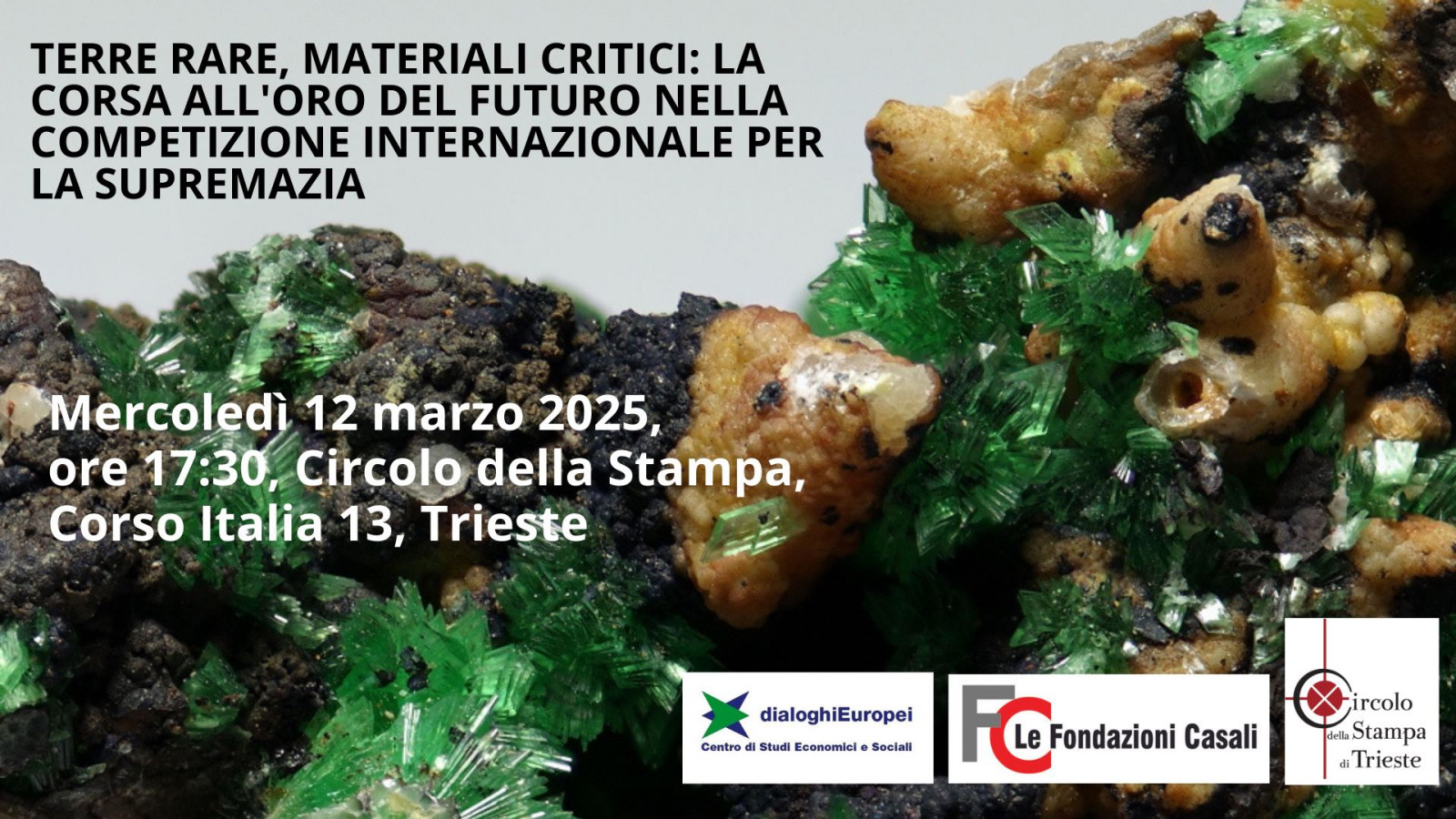 Parleremo di terre rare e materiali critici, un tema di incredibile attualità che tra l'altro spiega le ambizioni di Trump per la Groenlandia e, in maniera diversa, per l'Ucraina.
